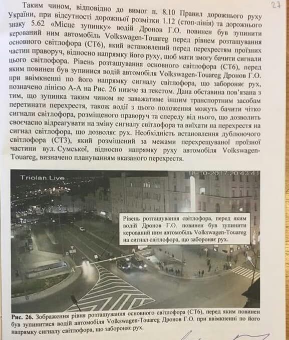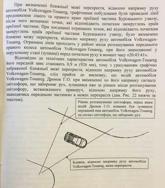 «Помните слова Дронова и его слезы, ибо он потом сказал, что «пожалел, что вообще родился на свет», хотя вину так и не признает юридически, только «как человек». Дополнительная экспертиза подтвердила то, что Дронов был на перекрестке на желтый, стартовал на желтый, иначе бы просто не смог бы доехать до места столкновения за 1 секунду зеленого сигнала в его направлении, будь он за границей перекрестка», - добавил Мельниченко.