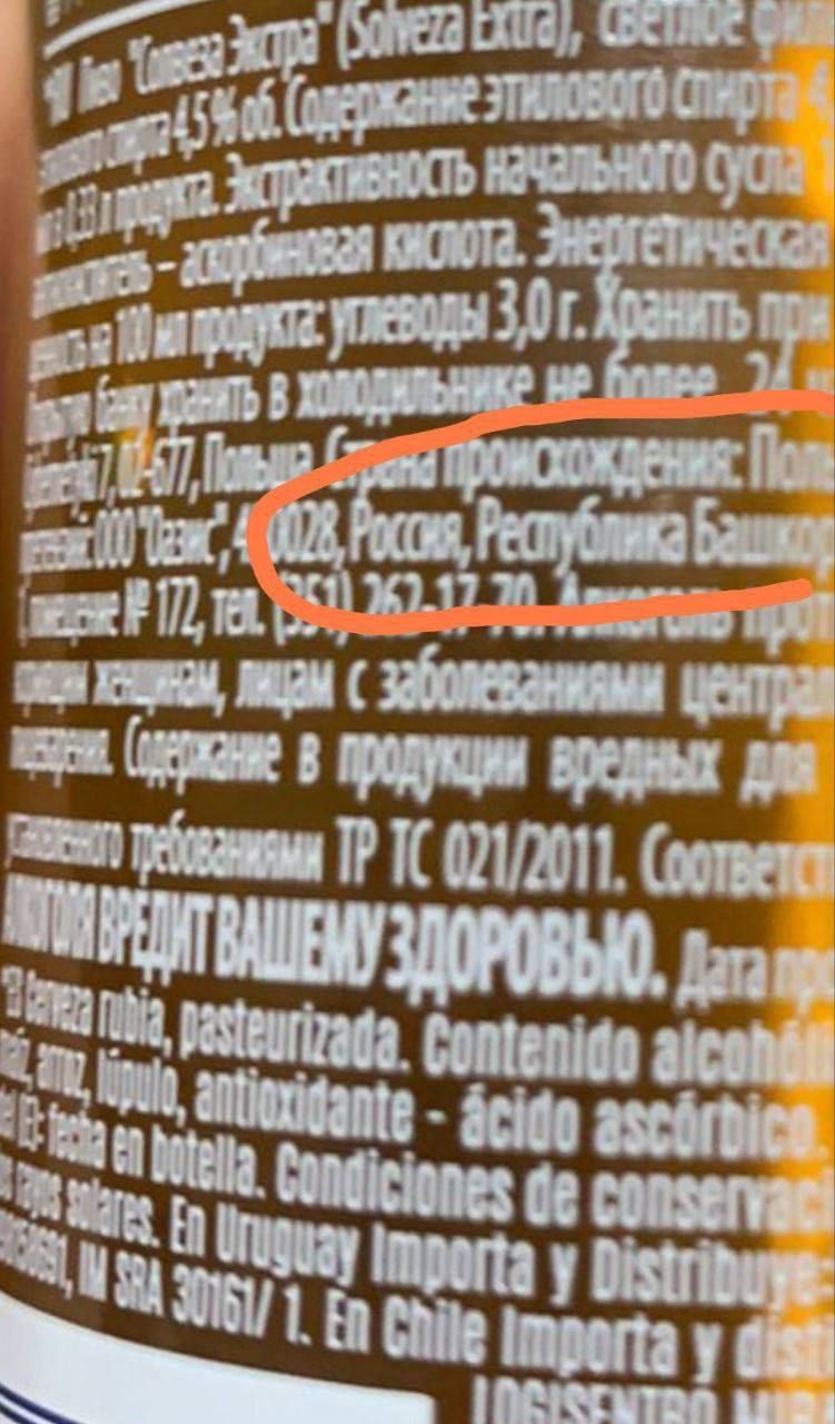 Страна происхождения напитка – Польша, но импортер Россия. Вся информация о товаре тоже на русском. Скорее всего, это партия, которую планировали продавать на российском рынке, но теперь по понятным причинам этого делать не могут.