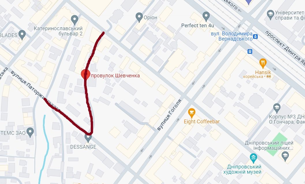 В Днепре до 12 июля перекрыли тротуар и проезжую часть по переулку Шевченко, а именно от улицы Паторжинского до улицы Шевченко. И по улице Паторжинского, от улицы Южной до переулка Шевченко.