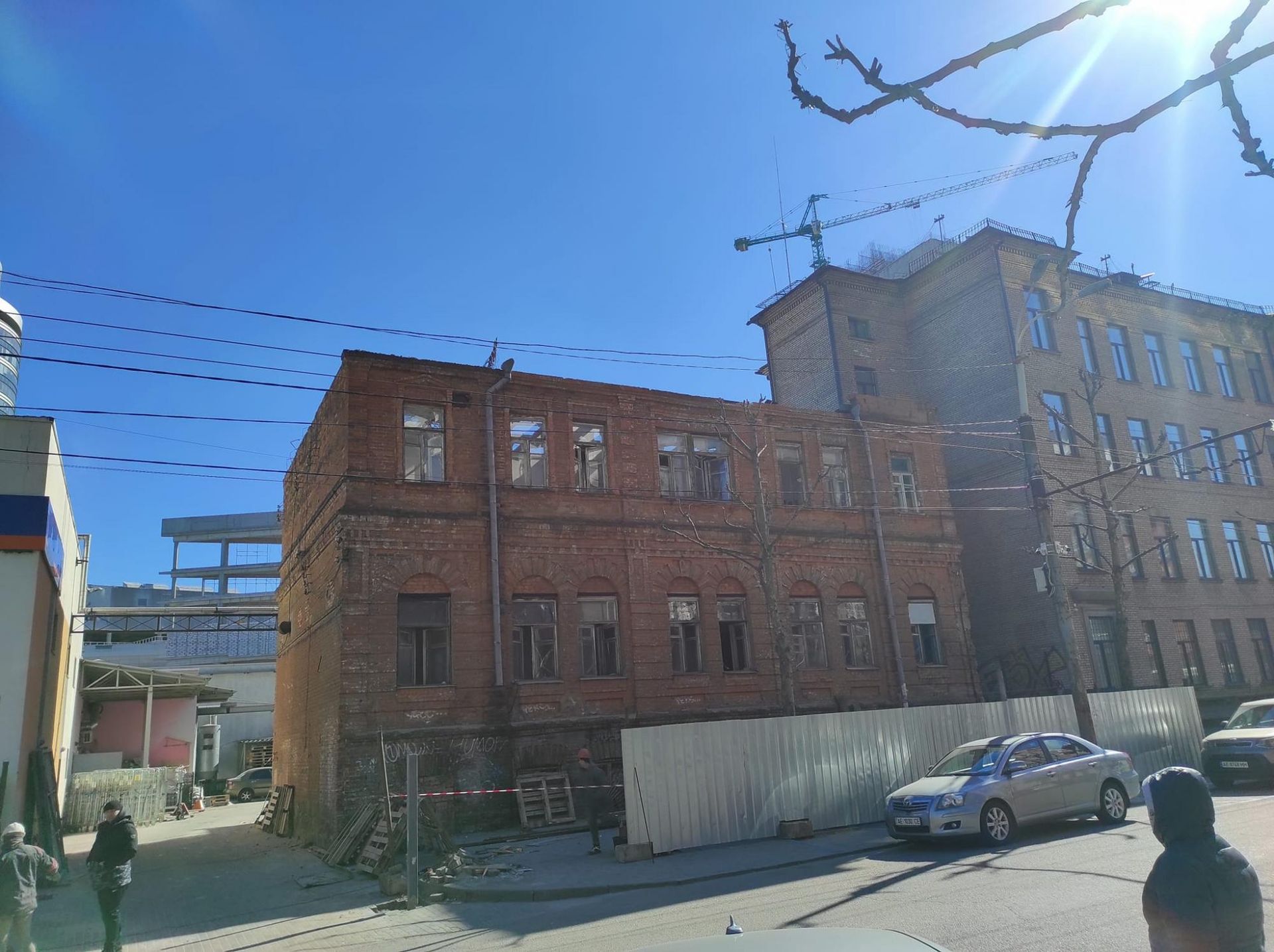 Некоторое время назад здание обнесли забором и быстро разобрали. Как выяснилось, на его месте будут строить многофункциональный комплекс общественного и жилищного назначения. Скорее всего там появится БФК «Зигзаг», часть будущего комплекса «Брама».