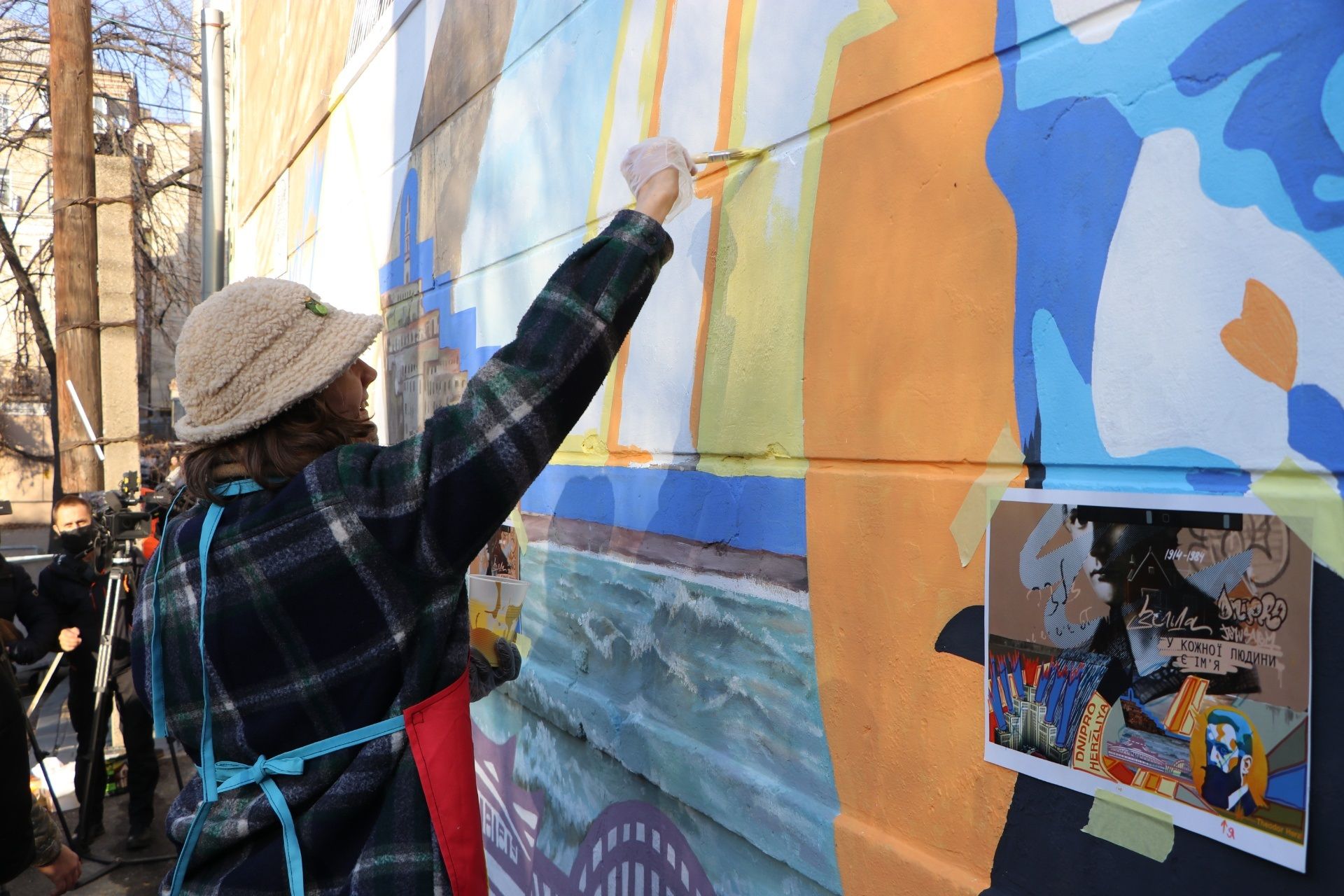 На Баррикадной, 8 еще в июле появился мурал, посвященный известной израильской поэтессе Зельде Шнеерсон-Мишковской, которая родом из Екатеринослава.