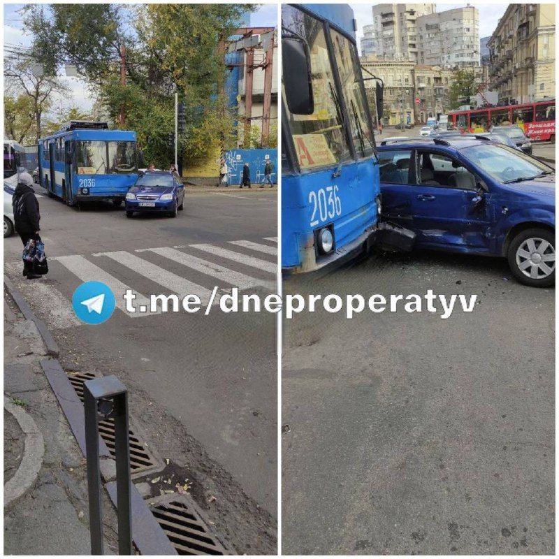 На перекрестке проспекта Яворницкого и улицы Грушевского столкнулись троллейбус и Chevrolet.