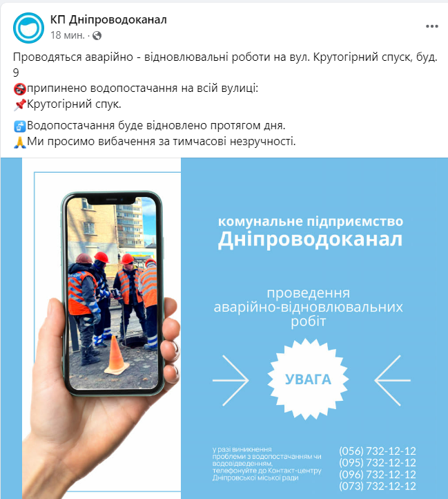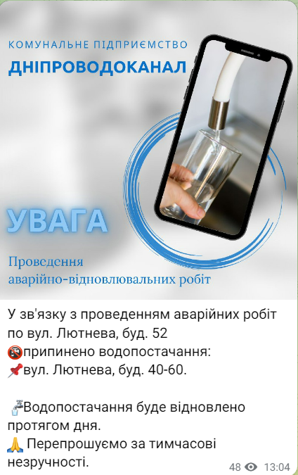 Напомним, ранее мы писали, что часть ж/м Приднепровск осталась без воды: что произошло и когда возобновят водоснабжение.