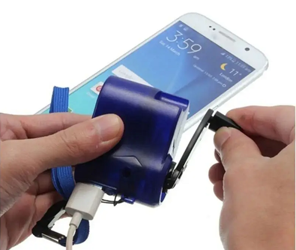 Принцип работы динамо-машины прост – нужно крутить ручку и таким образом внутри будет аккумулироваться энергия и передаваться на устройство. Обычно такой функцией снабжают фонарики, но есть продающиеся отдельно динамо-машины для зарядки смарфонов и пауэрбанков. Как долго ее нужно крутить, чтобы зарядить телефон – неизвестно. Номинальная сила тока в такой машине 0.6 А, выходное напряжение 5,5 Вольт. Цена ручного аккумулятора – порядка 400 грн. Но есть и ручные генераторы для такой цели. Крутить ручку в них нужно меньшее количество раз, телефон заряжается быстрее, но и цена у него может доходить до 2,5 тыс грн.