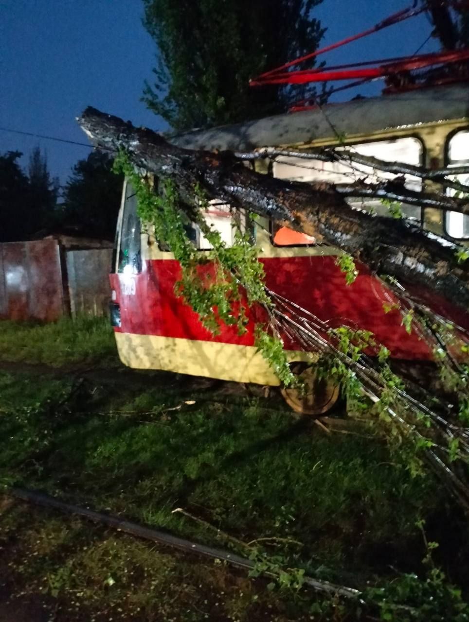 В частности, массивные деревья упали на вагоны трамваев №6 в районе остановки "Парк Казацкой славы - Кирилловка". Они повредили контактную сеть вагона. Потребовалось 44 минуты, чтобы деблокировать электротранспорт.
