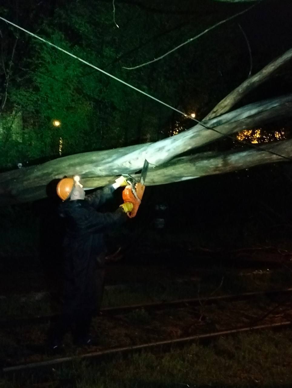 Также упало дерево по трамвайному маршруту №19 в районе остановки "станция Кайдакка". Из-за значительных повреждений специалистам понадобилось более 2 часов, чтобы возобновить движение.