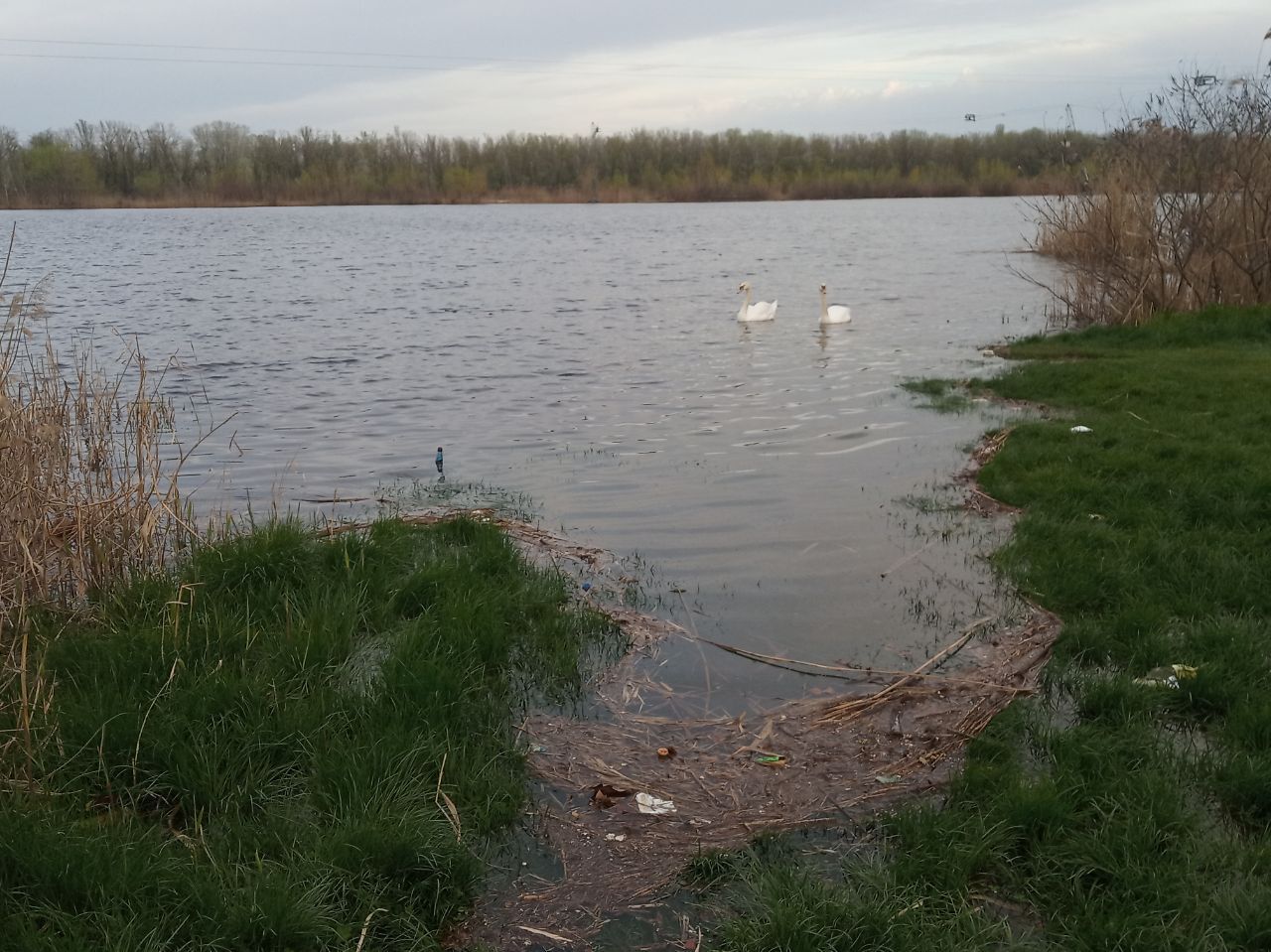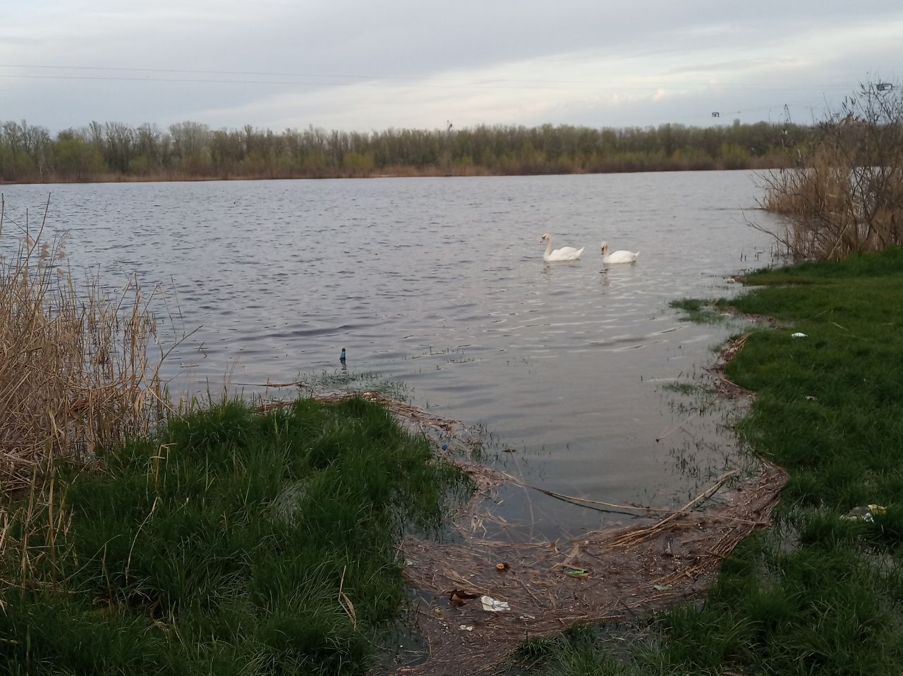 Вода ушла, а лебеди остались: после наводнения на набережной Днепра поселились пернатые супруги