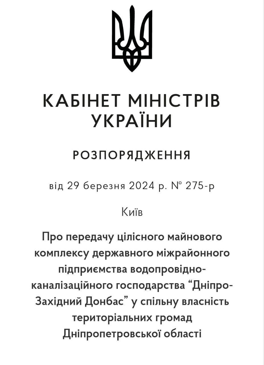 Пока что изменения произошли только на бумаге. Надо еще передать имущество водопроводно-канализационного хозяйства в общую собственность общин Днепропетровщины.