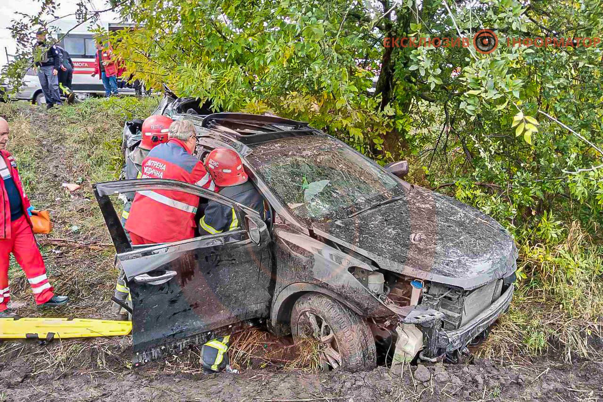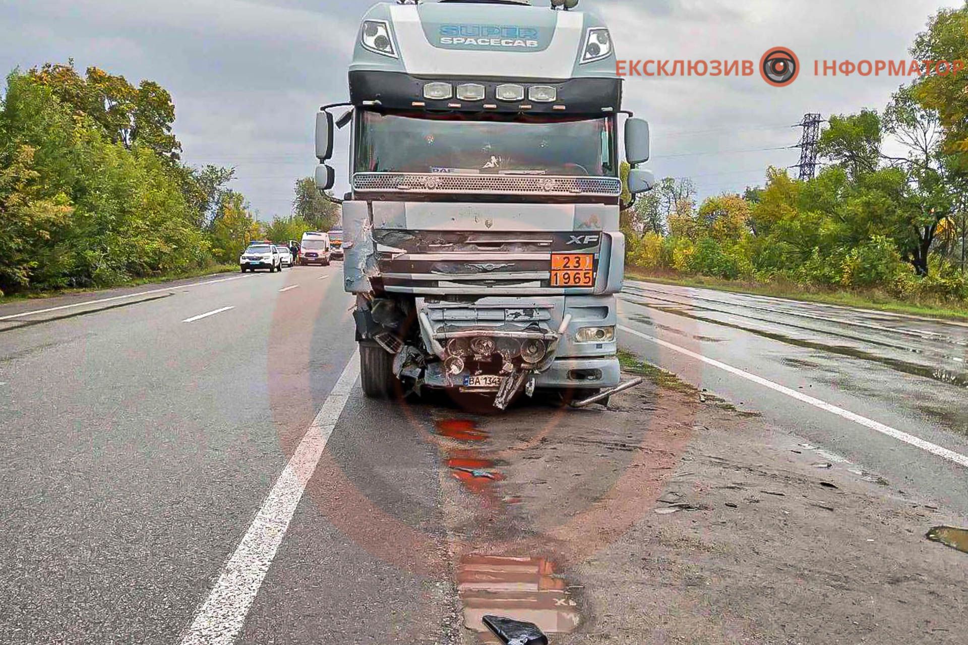 Известно, что Hyundai двигался в сторону Днепра. Предварительно, водитель иномарки не справилась с управлением, выехала на встречную полосу и врезалась в грузовик DAF. После этого Hyundai слетел в кювет.