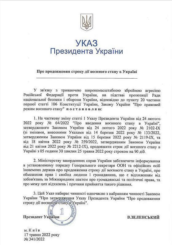 И военное положение, и мобилизацию продлили еще на 90 дней. То есть закончится и одно и второе должно 24 августа.