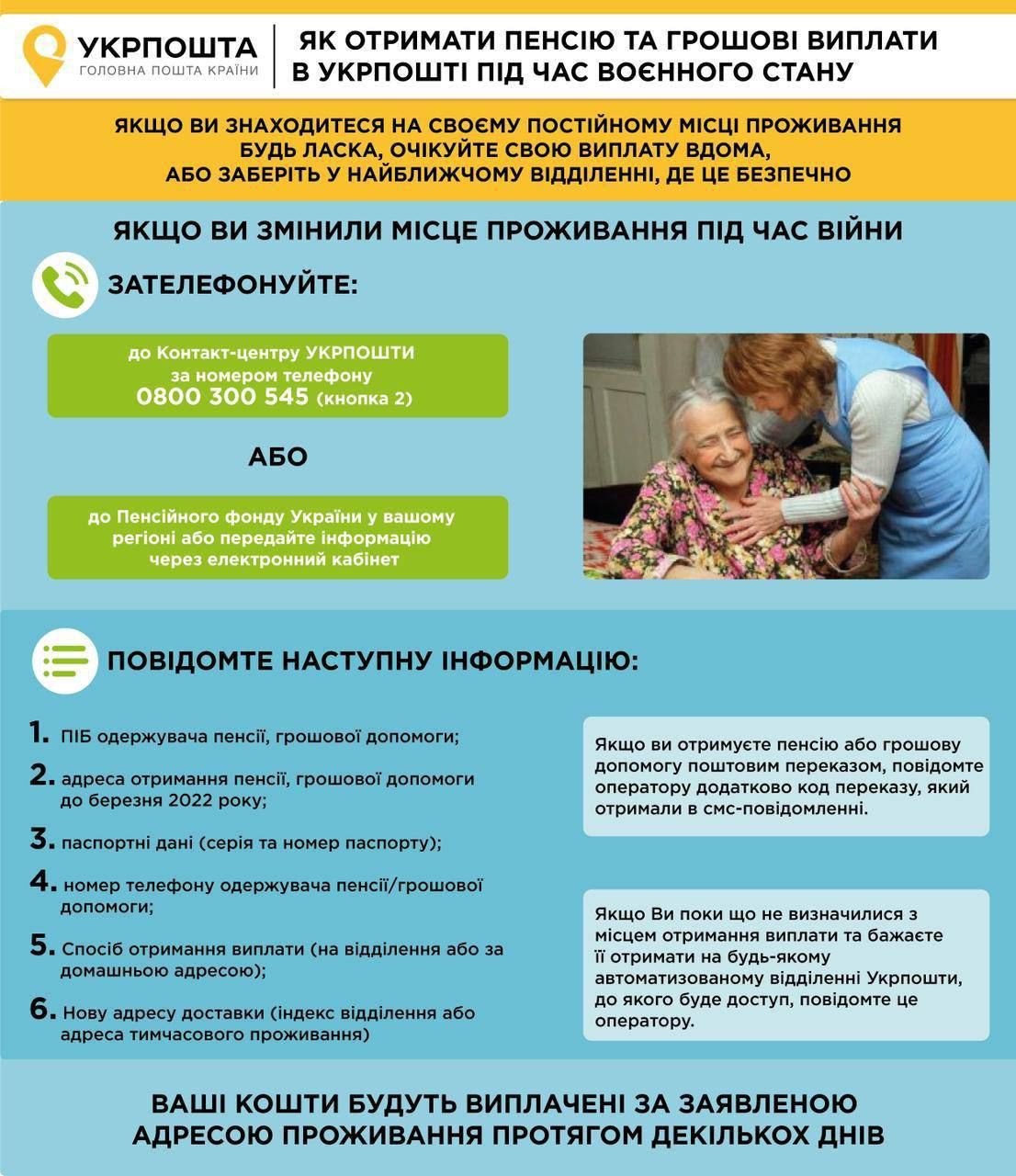Для тех, кто находиться на месте своего постоянного проживания ничего делать не нужно, социальные выплаты придут как обычно. Их принесут домой или вы можете забрать пенсию в ближайшем отделении Укрпочты.