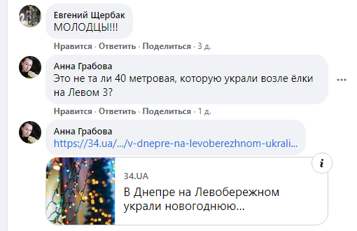 Днепряне предположили, что это та гирлянда, которую украли на жилмассиве Левобережный-3.