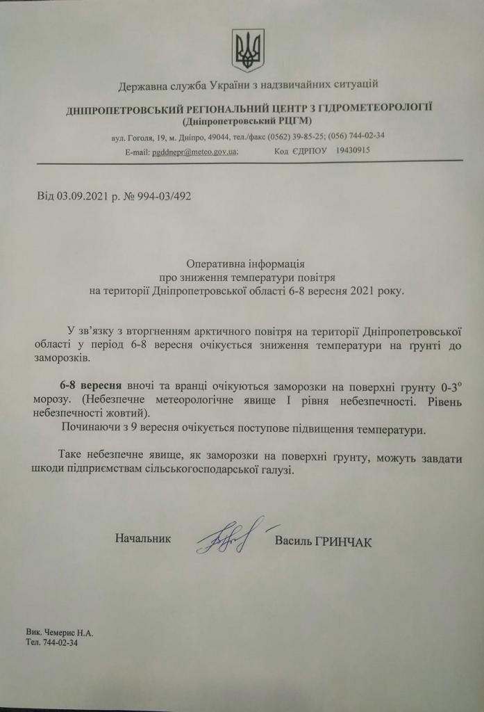 Уже скоро на Днепропетровщину придут заморозки. Об этом рассказал начальник Днепропетровского регионального центра по гидрометеорологии Василий Гринчак.