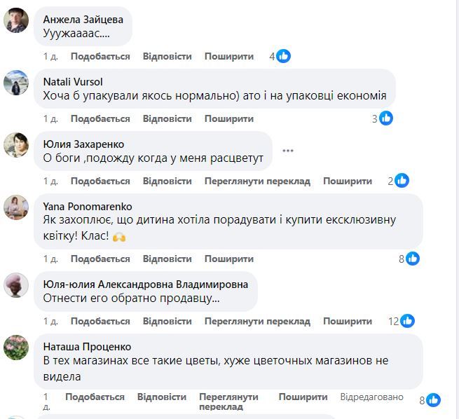 В комментариях разгорелась пылкая дискуссия. Днепряне разделяют возмущение женщины и отмечают, что цветок действительно не стоит таких денег.