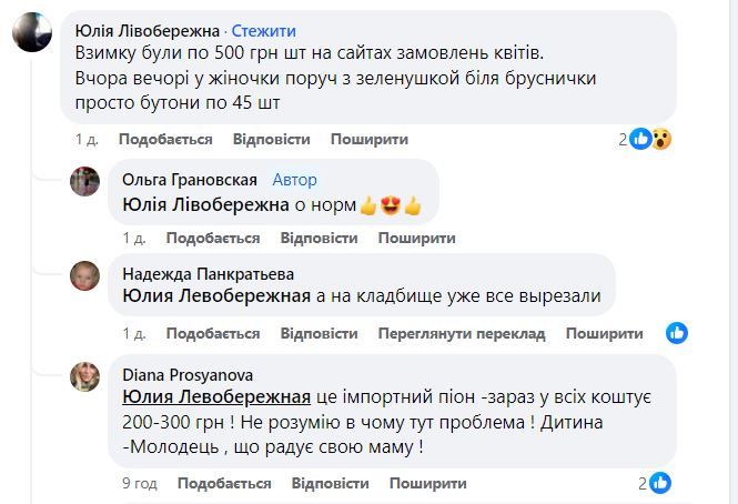 Как вам пионы за 180 грн за штуку? Продавец сказала ребенку, что они эксклюзивны. Эх, так и живем, – пожаловалась Ольга в Facebook-сообществе "Левый берег Днепр".
