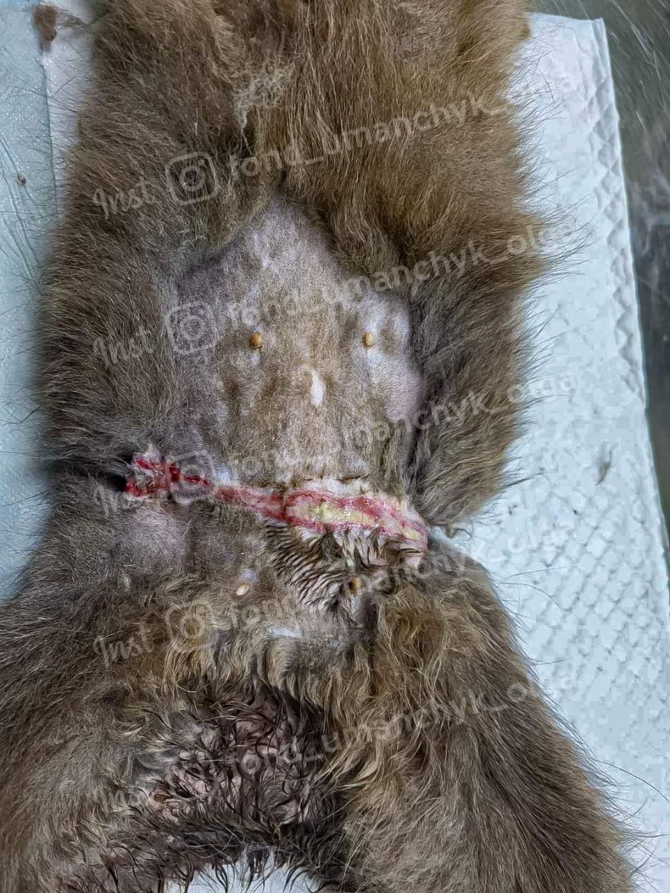 Сейчас кошке необходим уход ветеринара, который будет обрабатывать загноившиеся раны и лапку, с которой содрали кожу.
