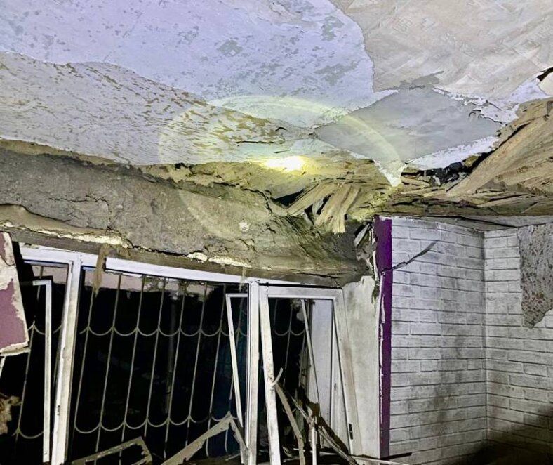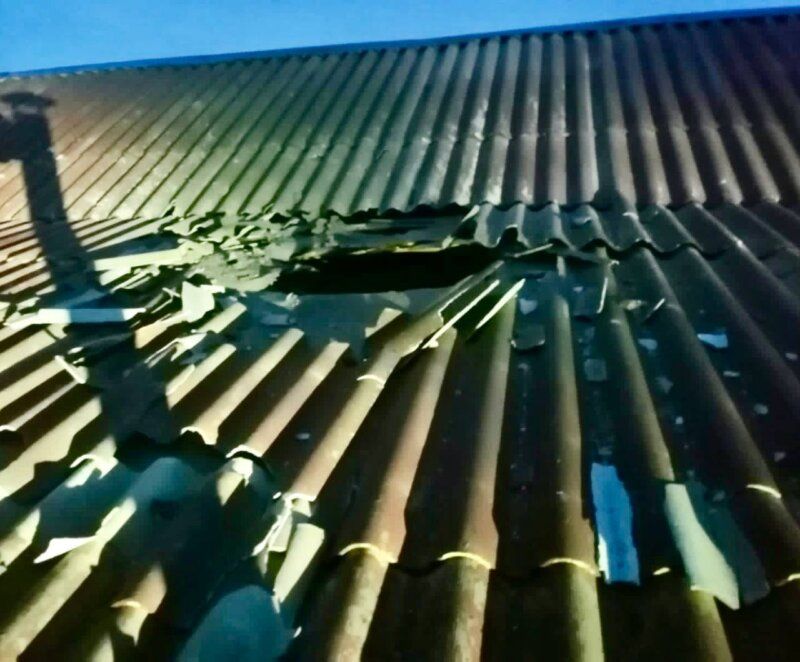 В Марганце повреждены 10 частных домов, детско-юношеская спортивная школа, сквер, газопровод и линии электропередач. Один дом загорелся. С пламенем пожарные справились.