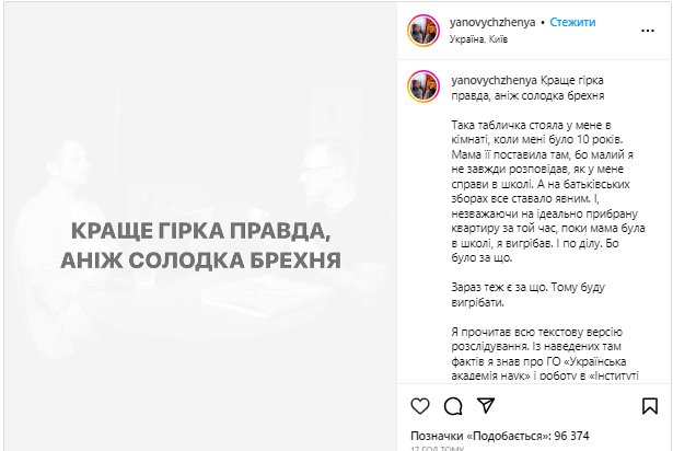 Я прочел всю текстовую версию расследования. По приведенным там фактам я знал об ОО «Украинская академия наук» и работе в «Институте когнитивного моделирования». Все остальное, как и для вас, – это новая информация. Мне сложно сделать выводы обо всем расследовании в данную секунду. Но есть решения, которые я принял, и они окончательные. 1. Завтра (13 апреля) в 9:00 не выйдет новый выпуск "Подкаст терапии". 2. В понедельник (17 апреля) никто не поедет в тур. Пока Коля занимается этим вопросом. Все средства будут возвращены. 3. А выйдет ли вообще когда-нибудь «Подкаст терапия»? Нет, – написал он.