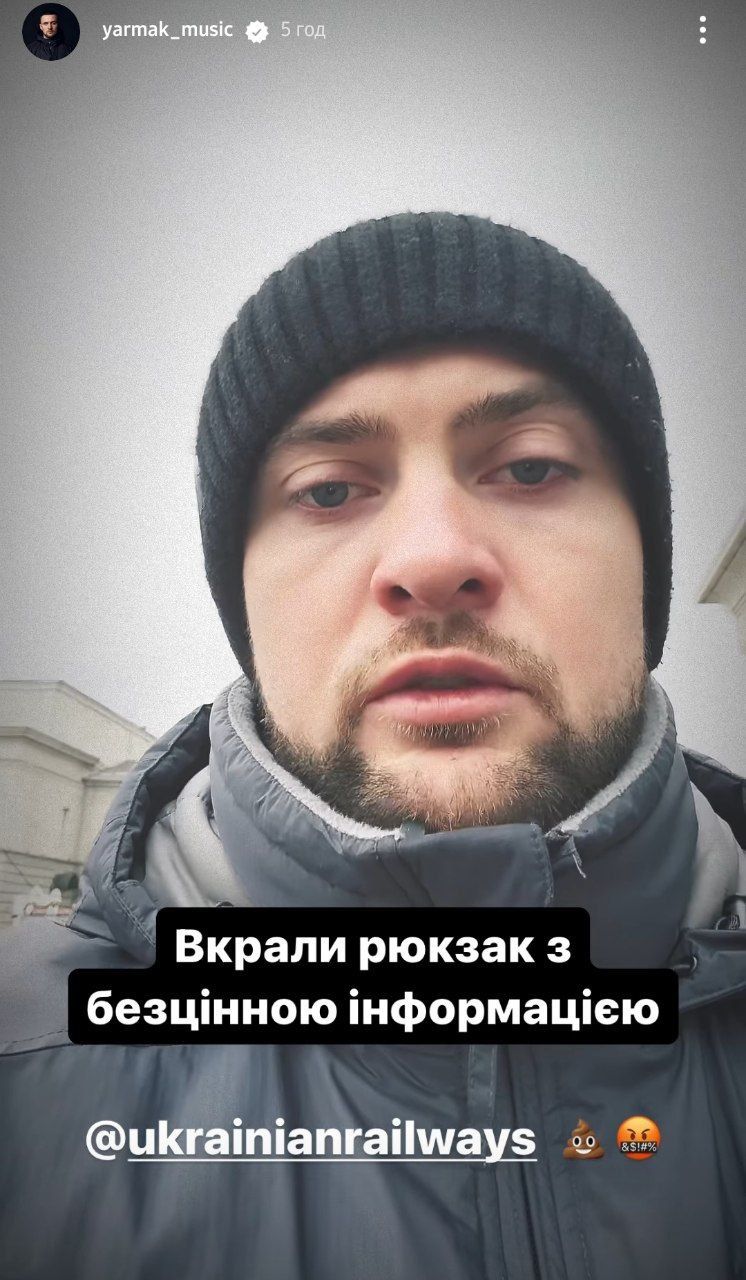 Александр в Instagram-сторис рассказал, что ехал в поезде "Днепр-Киев", ночью неизвестные украли из купе его рюкзак, где были ноутбук и Go Pro камера с уникальными кадрами военных действий.