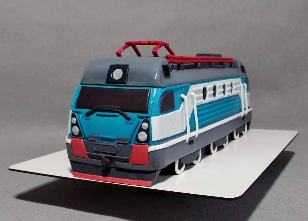 По словам Дмитрия, вес торта 4 килограмма. Он имеет форму конкретного электровоза – ВЛМ11М6.