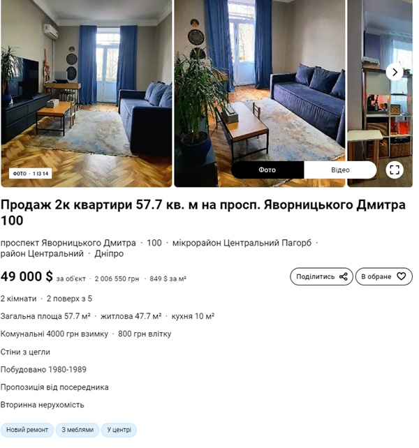 Сегодня купить квартиру в этом доме обойдется в 2 млн грн. За эти деньги покупатель получит 2-х комнатную квартиру, общей площадью 57,7 кв м, расположенную на 2 этаже 5-ти этажной части дома.