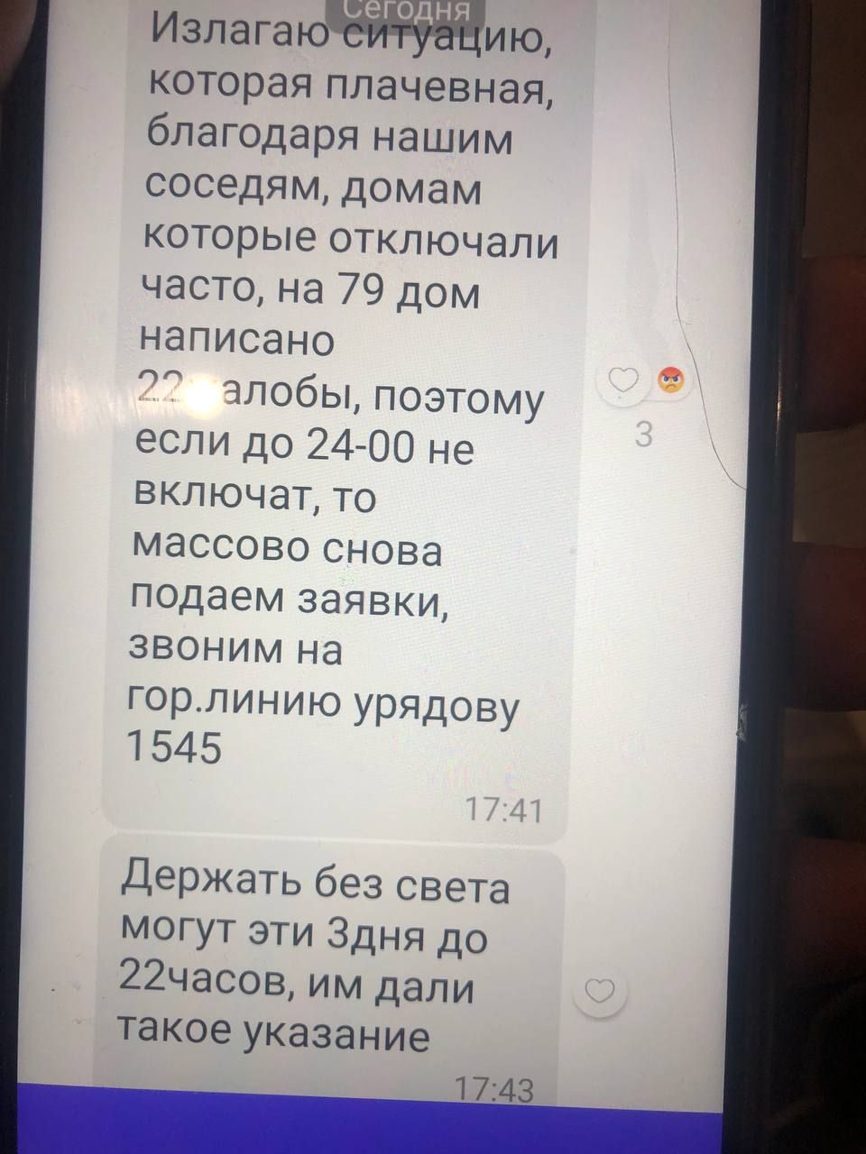 К примеру, в Днепре возникла "война" между домами. Жители многоэтажки пишут жалобы на соседей, у которых не так часто выключают свет. Об этом рассказали в телеграмм-канале "ХД".