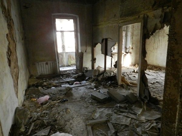 Так, в доме была арка с трехстворчатыми воротами. Но когда здание стало разрушаться – ворота украли. Когда в дом перестали приходить люди, его взломали и вынесли оттуда все, что представляло хоть какую-то ценность, особенно если это были металлические конструкции. Исчезли перила лестниц, потом деревянные перегородки, вырвали покрытие полов, в комнатах появились груды мусора.