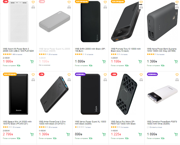 Рынок пауэрбанков огромен, выбрать можно аккумулятор как известной марки, так и не очень популярного или раскрученного бренда. Цена на зарядные устройства разная. Так, «банка» на 10 000 мАч в среднем стоит 1,2 – 1,4 тыс грн, но есть модели ценой и до тысячи гривен. За мощность в 20 000 мАч придется отдать до 2 тыс грн.