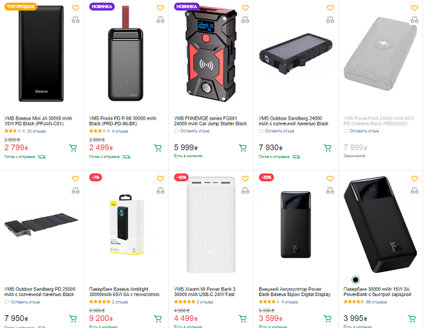 За аккумулятор от 30 000 и выше просят от 4 до 8 тыс грн. Более дороги модели оснащены солнечной панелью. Пауэрбанк неизвестной марки, но с батареей на 30 000 мАч может обойтись и 3,5 тыс грн.