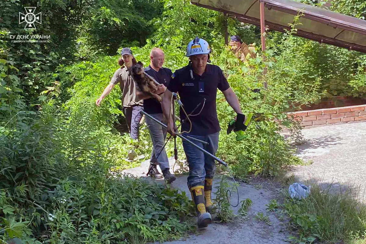 Застрял между железобетонными плитами: в Днепре ГСЧС-ники спасли четырехлапого