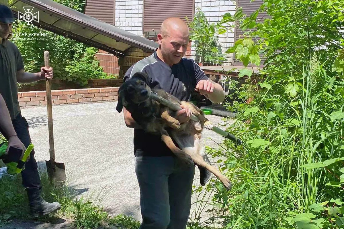 ГСЧС-ники с помощью специального устройства осторожно достали животное и передали работникам КП «Зооконтроль».