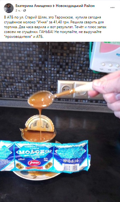 Жительница Днепра опубликовала пост о некачественном, по ее мнению, продукте. Сгущенку она купила в супермаркете АТБ.