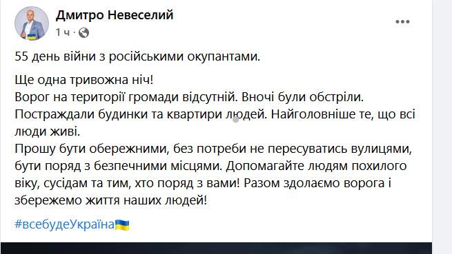 Также Дмитрий Невеселый просит быть предельно осторожными и по возможности удержаться от пребывания на улице. Это касается тех населенных пунктов, которые чаще всего страдают от обстрелов.