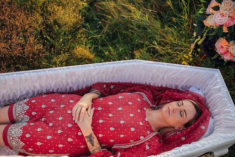 Студия ритуальных услуг Angels в Днепре организовывает концептуальные проводы в иной мир. Ее сотрудники уверены, что в свой последний путь покойник должен уходить красиво. Именно поэтому они разработали коллекцию нарядов на черный день для женщин.