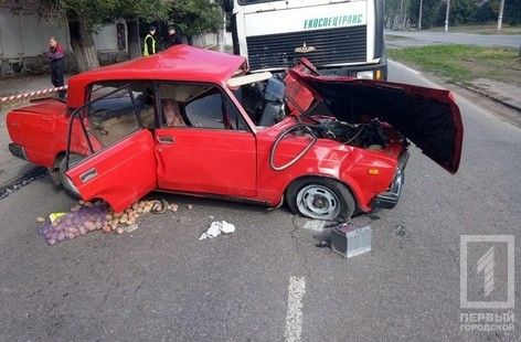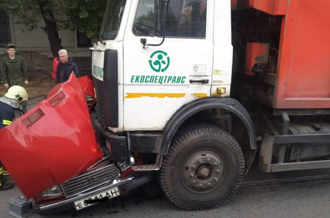 В Кривом Роге произошло жуткое дорожно-транспортное происшествие: мусоровоз «МАЗ» протаранил легковой «ВАЗ 2107».