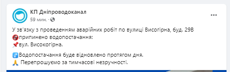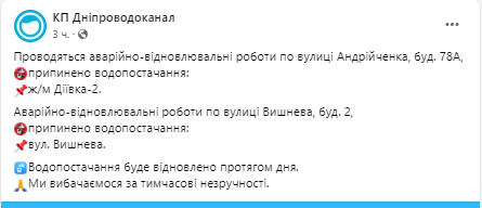 Сегодня, 17 апреля, некоторые жители Днепра остались без воды.