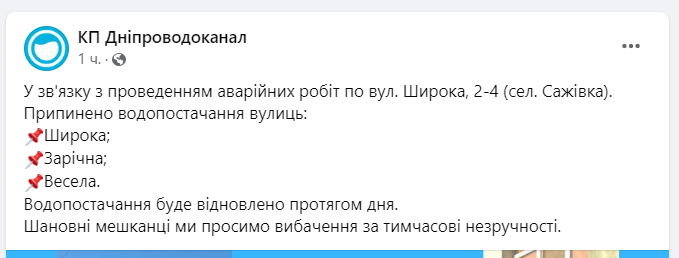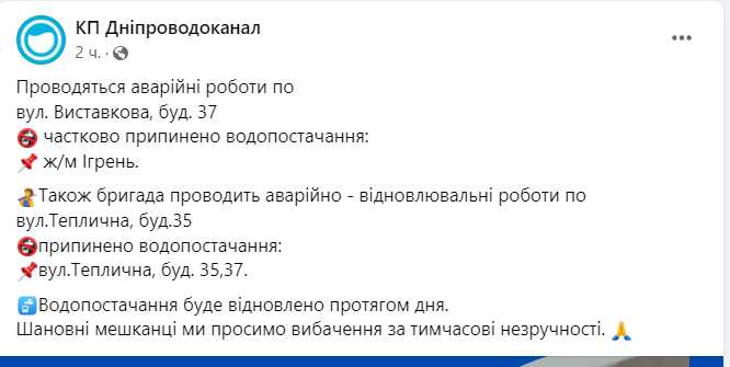 Жилой массив и несколько улиц: где сегодня в Днепре нет воды и почему
