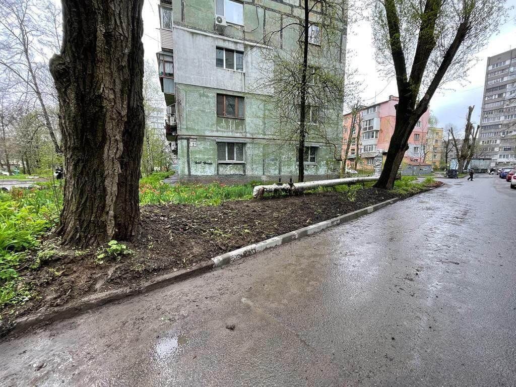 Зеленую зону уже восстановили. Теперь газон снова выглядит аккуратно.