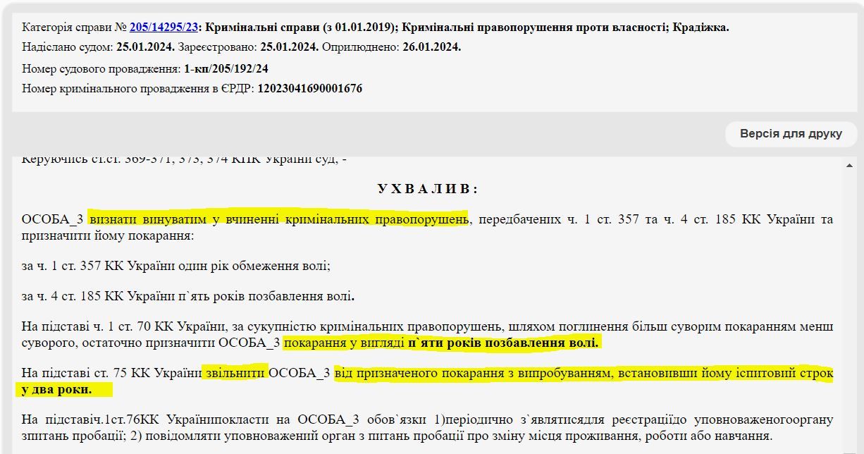 Ленинский районный суд Днепра вынес приговор мужчине, который украл карточку у женщины и за день потратил более 7 тысяч гривен сбережений с ее банковского счета.