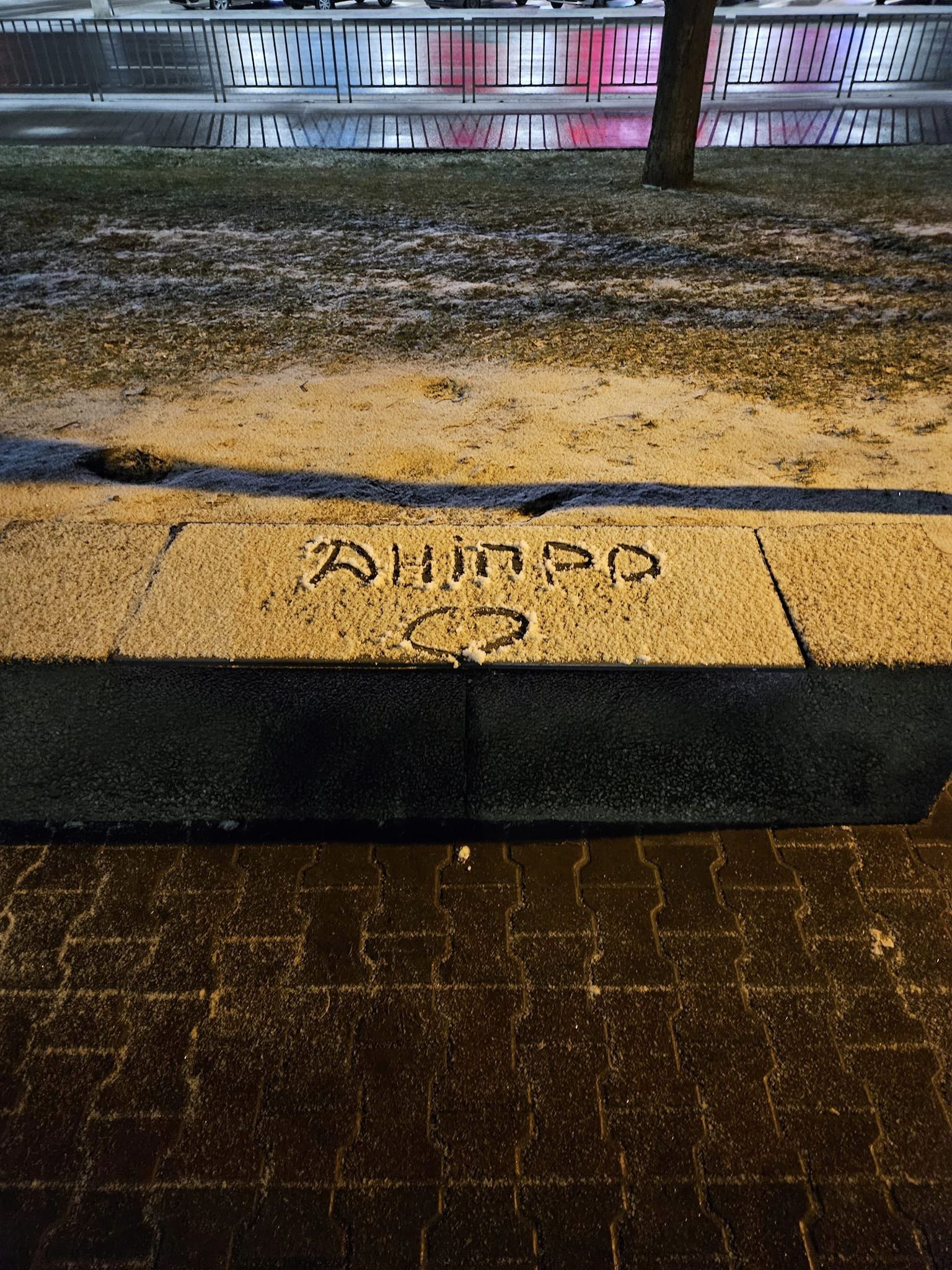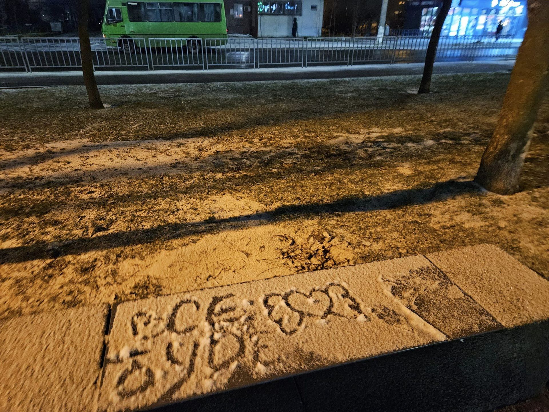 Жители Днепра оставляют послания на первом январском снегу (ФОТО)