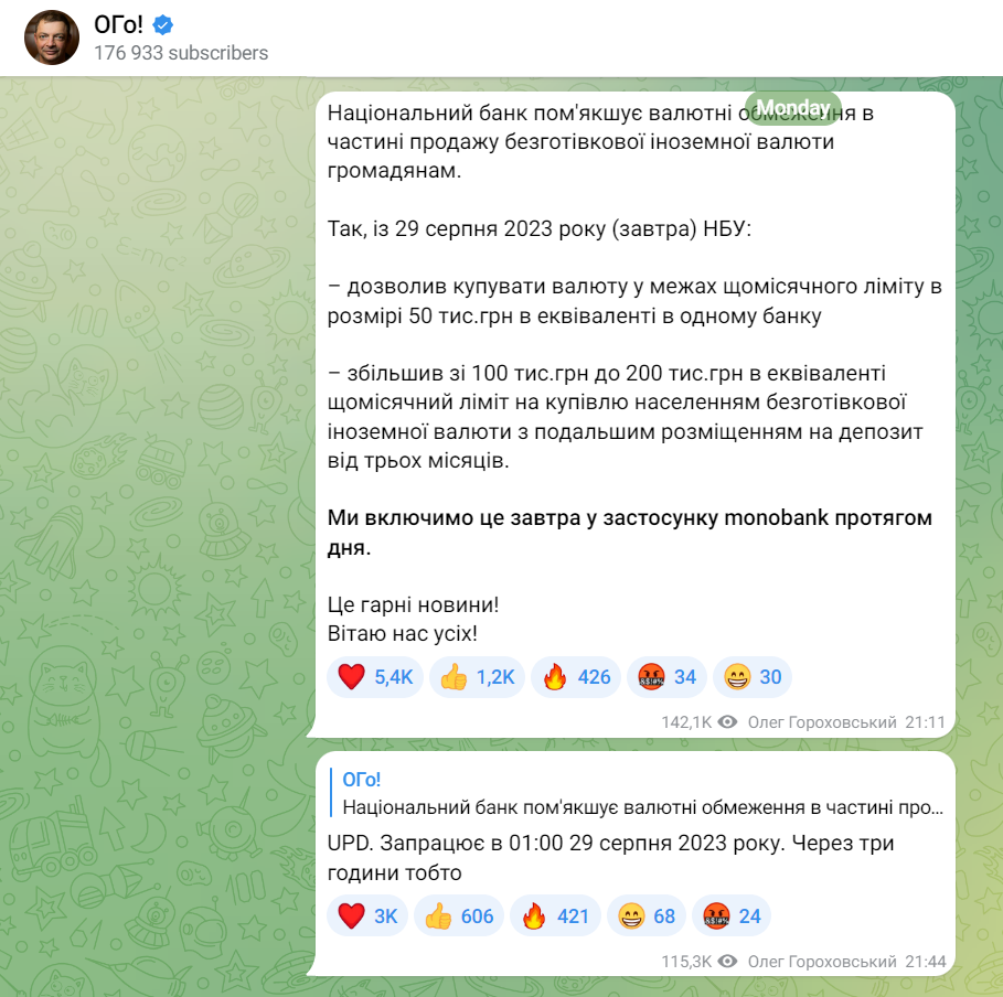 Об этом сообщил совладелец Monobank Олег Гороховский.