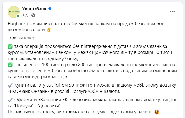 3. В государственном "Укргазбанке" также запустили продажу в приложении "ЭКО-банк онлайн": меню "Услуги" - "Обмен валют".