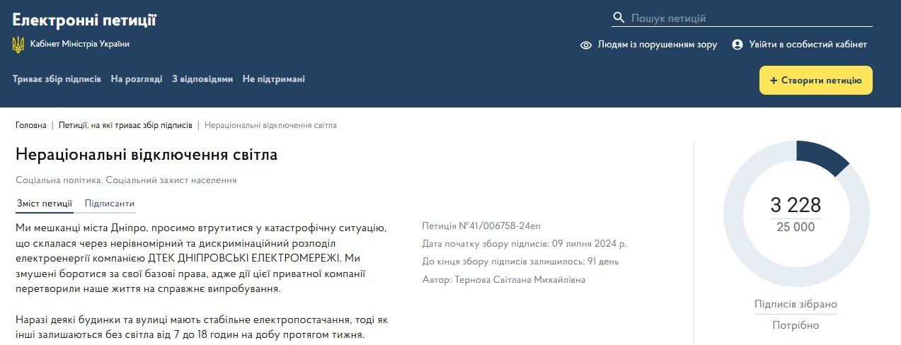 9 июля на сайте Кабинета Министров Украины появилась петиция с названием "Нерациональные отключения света".