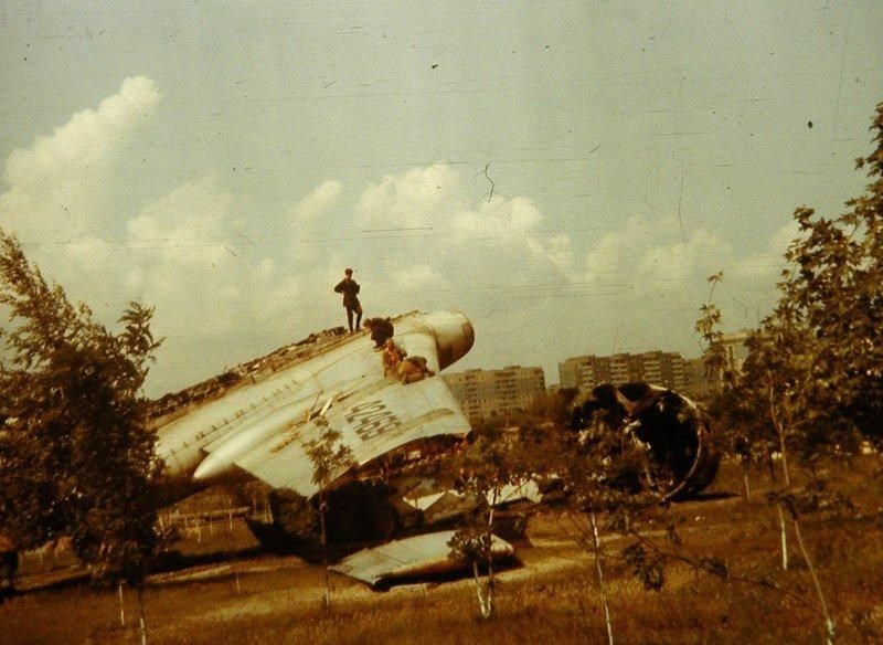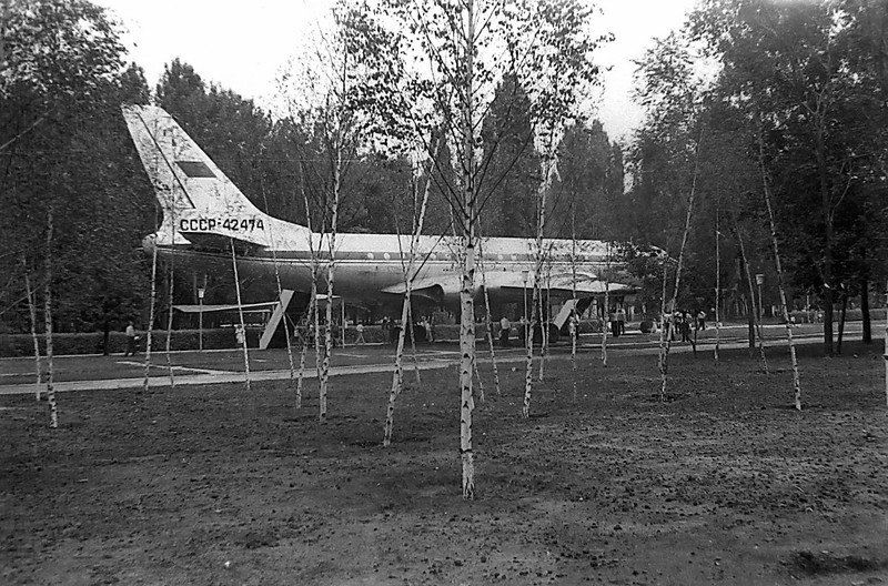 «Одесское предприятие подарило нашему городу самолет ТУ-104, видел как везли его через город и поставили в парке им. В.Чкалова, это было супер! В парке здоровенный самолет, я тогда в школе учился, я частенько возле него лазил, всякое пытались сделать из него, и кинотеатр и музей, но шото ничего не пошло, так он и стоял себе, пока его не решили убрать где то в году 83-84-м, когда разбирали шасси сложились и убило механика с аэропорта, я про это узнал когда уже работал там, тех бригада с нашего аэропорта его демонтировала, так же как и монтировала, потом учился в УТО-8 вместе с тем бывшим бортмехаником из Одессы, который перегонял именно этот борт к нам в Днепр. жалко конечно что убрали такой раритет, щас там всякую херню понастроили, вот нашёл фотку, сам делал»*.