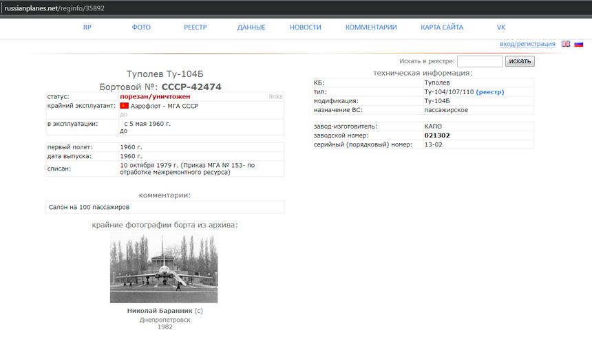 Можно смело предположить почему выбор пал на ТУ-104. Первые советские реактивные самолеты для перевозки пассажиров начали совершать полеты в 1956 году. В 70-х по сроку давности их начали массово списывать. О чем, Иван Иванович, наверняка был осведомлен.