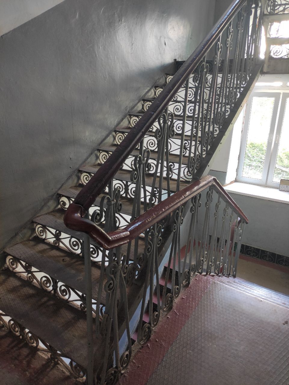 У кожному збереглися свої не повторні сходи, в одній будівлі – дерев'яні, в іншій – ковані, залізні, з химерними поручнями.