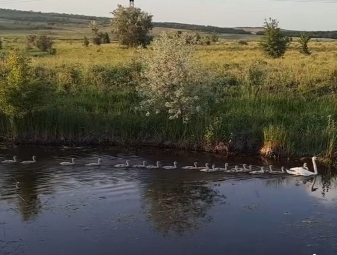 Фермер Володимир Гаврилов із села Новопавлівка на Дніпропетровщині знімає вірусні відео про надзвичайно велику родину лебедів. У пари під опікою 21 пташеня. Скоріш за все, пара "усиновила" малих, які втратили батьків з різних причин, адже лебедиця відкладає за раз лише 5-8 яєць.