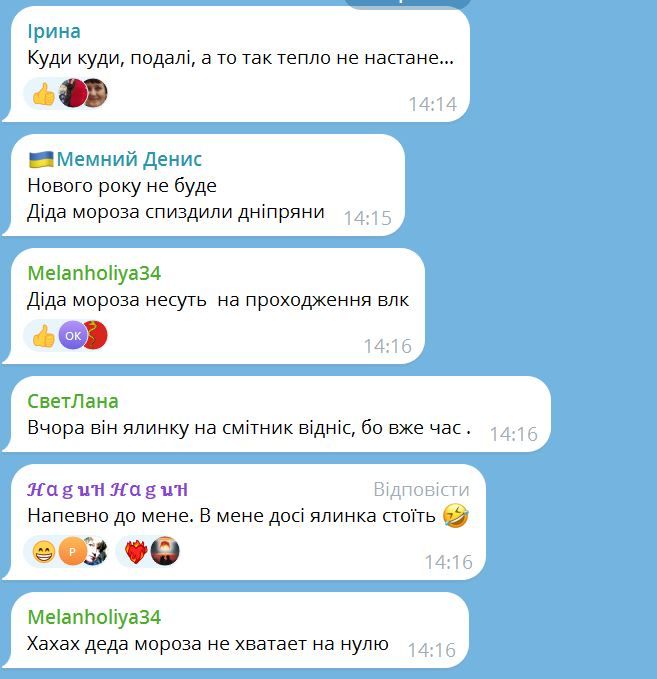 Водночас містяни жартують, що тепер Різдва та Нового Року не буде, бо Діда Мороза/Санту вкрали дніпряни.
