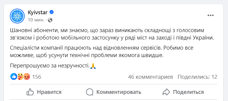 Пізніше у компанії відповіли на ці скарги. Там зазначили, що знають, що зараз виникають складнощі зі зв'язком, та додали, що спеціалісти працюють над відновленням сервісів.