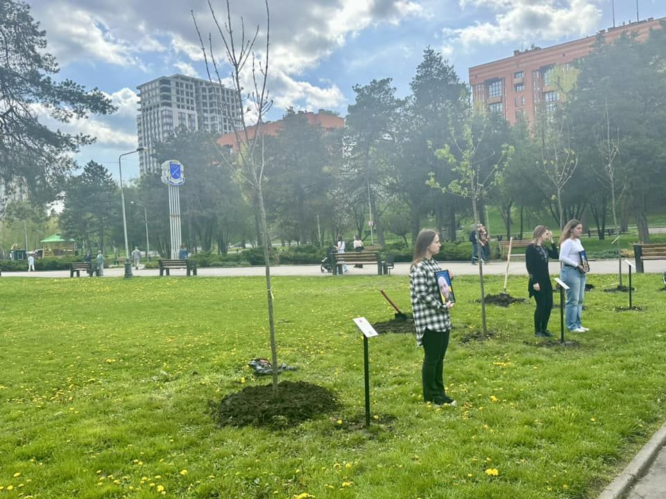 Алею живої памʼяті захисників України висадили у Дніпрі у парку Глоби.